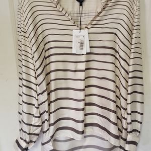 Beautiful silk striped tunic. Ivory with dark grey stripes.