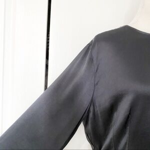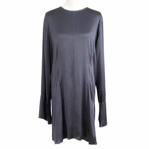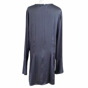 NWT TREASURE & BOND X SOMETHING NAVY GREY PHANTOM BELL SLEEVE MINI SHIFT DRESS - STYLE : TB375117MI, Slip into the retro aesthetic of this crinkled satin A-line dress punctuated with flared cuffs perfect for those who like to talk with their hands. Designed in collaboration with Something Navy blogger Arielle Noa Charnas, this short look is an easy way to get her effortless style for yourself. Round neckline - zip up in the back- bell lon sleeve - shift loose fit comfy dress with pleated detail at waist - unlined. No stretch.