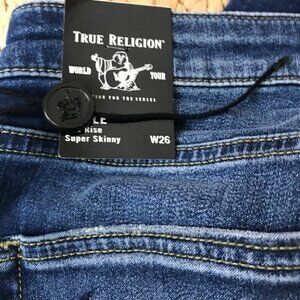 NWT True Religion Halle Mid Rise Super Skinny Distressed Jeans Size 26