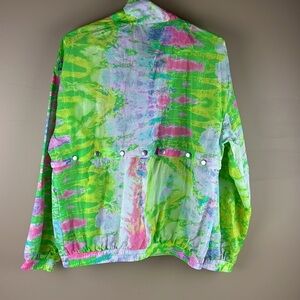 Fabulous multi coloured windbreaker. Has snaps around the midriff to turn the coat into a cropped style.