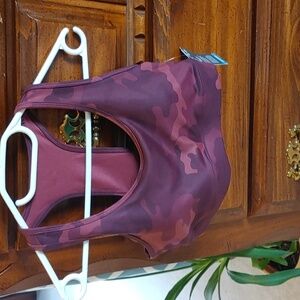 Nwt Women's Gap Fit Burgundy Cammo Work Out Bra