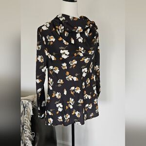💝Nwt black printed blouse womith feather like/ leaf floral