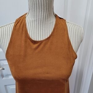 Faux suede swift dress with a high neck and cut out floral detailing along the hemline