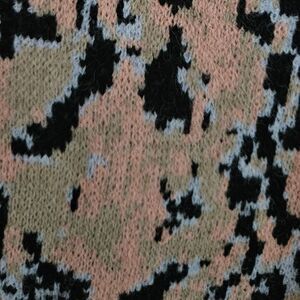 Chic knit top with abstract design. Features pink and black hues. Ideal for stylish outings.