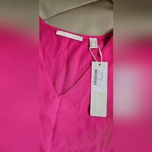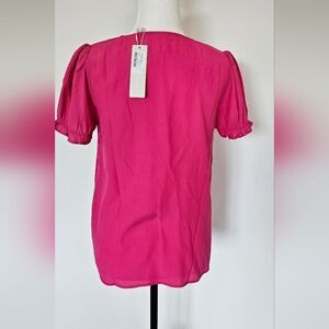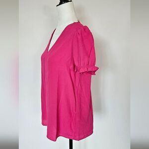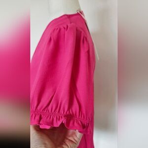 size small, made in turkey, elasticized short sleeve cuffs, vneck, light and flowy, barbie pink, retail $68