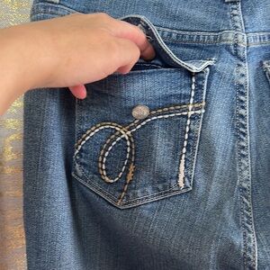 - Not Your Daughters blue medium wash bootcut Jeans .5 style pockets with belt loops and ,Back Flap pockets