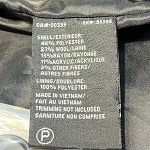 46 % Polyester, 27 % Wool, 13% Rayon, 11% Acrylic, 3% other fibers