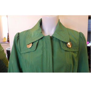Gorgeous NWT Nygard green jacket with lining. Really nice quality jacket in size 12. Be bold and different; you don't see alot of green jackets around! There is a button broken off one sleeve but it comes with an extra button so you can replace it.