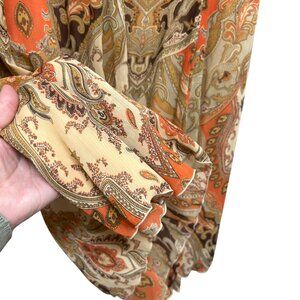 Nygard Collection Orange Brown Paisley Flowy Free Spirit Boho Midi Skirt Size 12