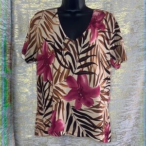 Nygard Collection Petites Short Sleeve Floral Top Size L