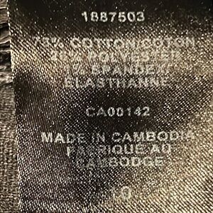Material: 73% cotton, 26% polyester, 1% spandex