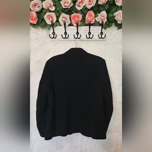 Elevate your layering game with this timeless black wool-blend blazer, designed for both style and versatility. Fully lined for added comfort, it’s the perfect lightweight option for crisp fall days or as an extra layer beneath a heavier coat when the temperature drops. With its classic tailoring and refined silhouette, this piece effortlessly transitions from work to weekend, offering a polished yet practical addition to your wardrobe.