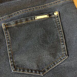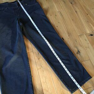 Good preowned condition, indigo, slim and stretchy Nygard jeans/jeggings by Nygard Slims. The colour is described as indigo, but it honestly just looks black to me. I believe there may be just the faintest tint of blue in this. This knit denim is toted as one of the most comfortable compression jeans in the world. It will tighten your thighs, flatten your stomach & smooth your hips. With the contoured 2.5" waist band there is NO GAPE. I'm pretty sure the pockets are faux.