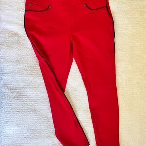 Nygard Slims Red Jegging Pants L (14–16) Stretch Pull-On Black Trim