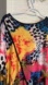 Bold abstract design with vibrant colors. Short sleeves and round neckline. Perfect for a lively look.