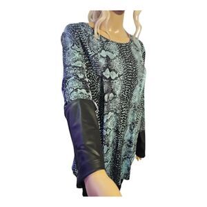 Nygard Green Snake Skin Animal Print Tulip Back Long Line Top