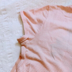 Adorable and airy, this Nylon Apparel tee is the perfect blend of feminine charm and casual cool. The front features a silky, semi-sheer polyester panel with a lush pink and green floral print framing a bold graphic that reads *“It all feels right on – fashion never sleeps.”* The back and sleeves are made from a soft, lightweight cotton in a subtle stripe, giving the shirt a layered look and breathable comfort.