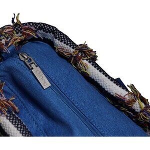 O Bag Unisex Blue Purse Striped Trim Inner Canvas Rope Handles Waterproof Tote