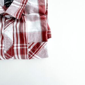 O' Neill Mens Casual Button Down Shirt Plaid Rust Red Size XL