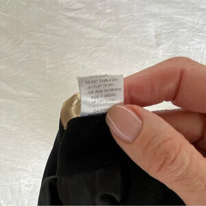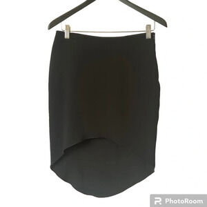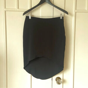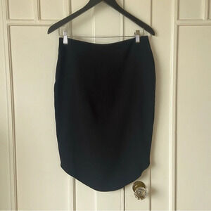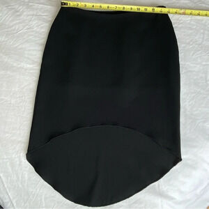 Oak and fort black maxi skirt short good for the office or date night. Line halfway made of 100% polyester side zipper size medium. No hem so give that edgy look