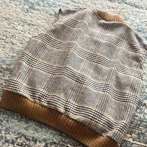 OAK + FORT Brown and Gray Plaid Sweater Vest