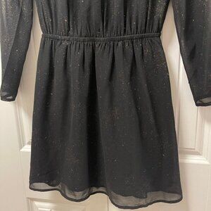 OAK + FORT Celestial Gold Flecked Long Sleeve Cutout Dress Black – S