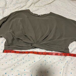 This OAK + FORT cropped top combines modern design with effortless style. Made in Korea, it features a wrap knot detail at the front, flared sleeves, and a relaxed fit for ultimate comfort. The dark cactus sage green color adds a versatile and chic touch, making it a standout piece for any wardrobe.
