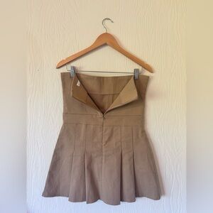 OAK + FORT Strapless Pleated Tube Preppy Tan Mini Dress