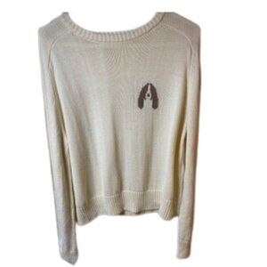 Adorable cream sweater with woven cocker spaniel
