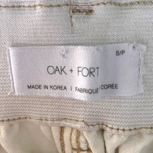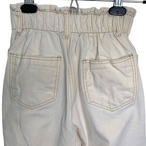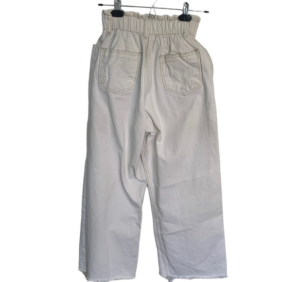 Oak + Fort High Rise Elasticized Paper Bag Cropped Wide Leg Raw Hem White Denim Women’s Small
