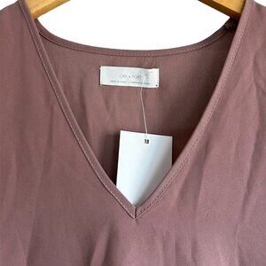 OAK+FORT Sleeveless Chiffon like contemporary blouse. Rose Mauve. Very lightweight. Boxy crop fit. V-neckline. Closet Staple. Can dress up or down. US S.