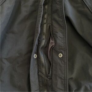 Features full zip/snap button closure, hood, zipped pockets, adjustable cuffs, cinchable waist, pit zips