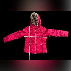 Color is Sangria. Jacket is in excellent, clean, pre-loved condition. All zippers and drawcords work properly