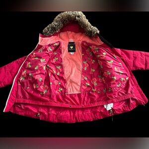 Color is Sangria. Jacket is in excellent, clean, pre-loved condition. All zippers and drawcords work properly