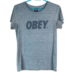 OBEY Graphic Logo Crewneck T-Shirt Heather Blue Short Sleeve USA Baddie Size M