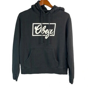 OBEY Graphic Logo Long Sleeve Hoodie Sweatshirt Black Kangaroo Pocket *As Is* M