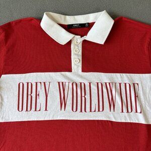 OBEY Worldwide Structure Men's Size M Polo Shirt Rugby Red White Striped Y2K VTG