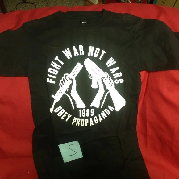 Obey propaganda tshirt. Size is small. Cotton with a great slogan.. it's a beaut