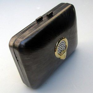 The 1930s Art Deco Clutch / Style with: a structured dress or a tuxedo jacket + jeans + killer heels for an edgy party look! / MEASUREMENTS: 7"W x 4 6/8"H x 1 6/8"D, 19" non-detachable chain handle length.