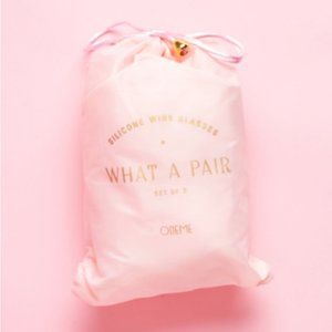 ODEME “WHAT A PAIR” PINK SILICONE WINE GLASSES. Odeme Silicone Wine Glasses set of 2 - rose pink. Brand New. New in gift bag. Perfect for picnics, camp-outs, parties, as a gift, or just a night in with your friends. These Silicon Wine Glasses were made with you in mind. Comes with a drawstring pink bag to store/carry the set. -UNBREAKABLE -PORTABLE/packable and foldable - -easy to wash -DISHWASHER SAFE Never been used brand new Odeme Dining Drinkware.