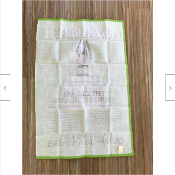 O'Darby "The Cream of Irish Creams" kitchen towel printed with recipe for Irish Cream coffee in English & French. Kitchen towel was made in Ireland, 52% flax (linen)/48% cotton. 28" long x 19" wide. Excellent condition, appears unused/like new.