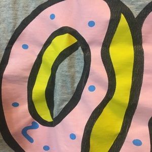 Slightly worn Odd Future (OF) brand t-shit. Size L/XL The backside logo is kind of stretched which has caused cracking lines. It’s also a bit wrinkly but I will re-wash and iron it as well.