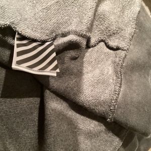 OFF WHITE oversized zip up hoodie. Small. Distressed gray. The signature statement design fills the back of the hoodie. I am a large its a great oversized fit for me.