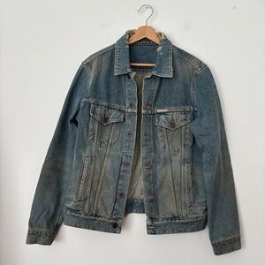 Rare Off-White denim jacket from the 2018 season featuring a striking purple-to-pink gradient on the back, paired with classic Off-White branding. Made from heavyweight denim with metal hardware and the signature industrial aesthetic that defined Virgil Abloh’s early work.