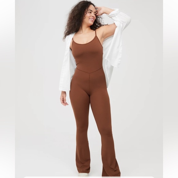 OFFLINE By Aerie Real Me XTRA Flare Jumpsuit Dark Brown Medium