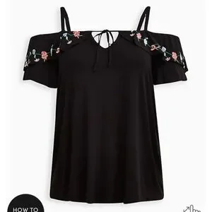 🆕️🌸OFF-SHOULDER EMBROIDERED FLORAL RUFFLE TOP 🌸