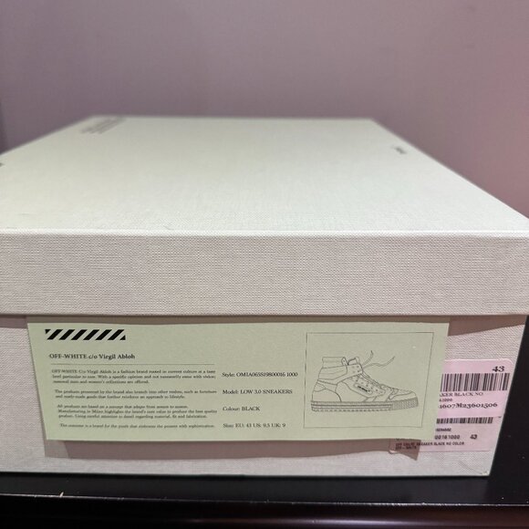 OFF-WHITE OFF COURT 3.0 TRIPLE BLACK SIZE EU 43 US 9.5 WITH BOX/TAGS AND RECEIPT