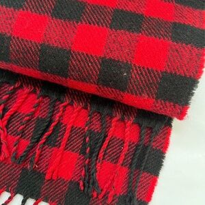 OGGI Canada Scarf Buffalo Print Red & Black Fringe