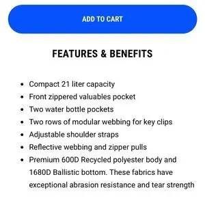 Premium 600D Recycled polyester body and 1680D Ballistic bottom. These fabrics have exceptional abrasion resistance and tear strength