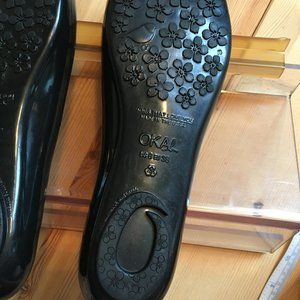OKA B Black Shiny Patent Rubber Ballet Flats